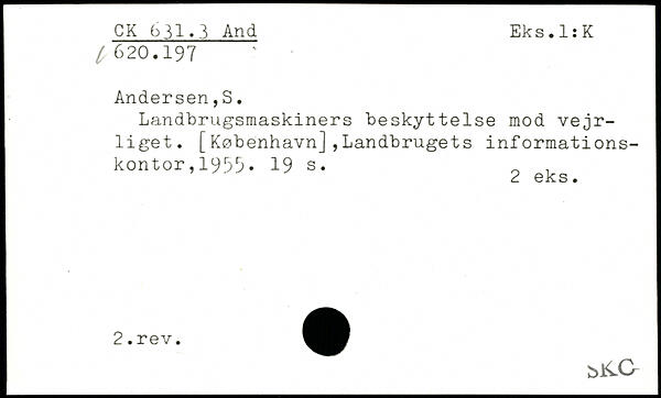 Landbrugsmaskiners beskyttelse mod vejrliget. [København],Landbrugets informationskontor , 1995.