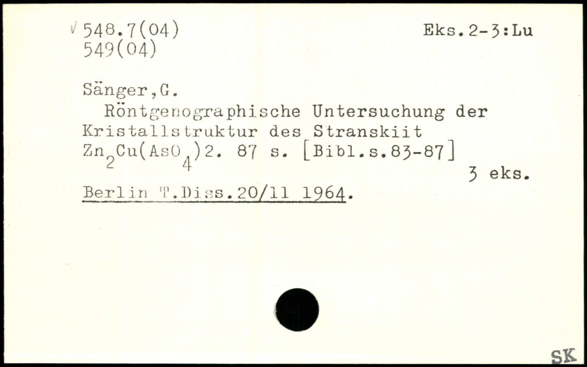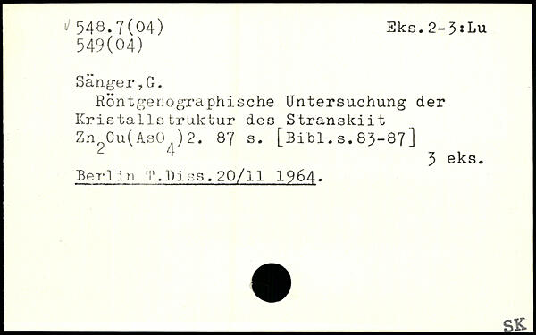 Röntgenographische Untersuchung der Kristallstruktur des Stranskiit Zn Cu(Asü )2.
