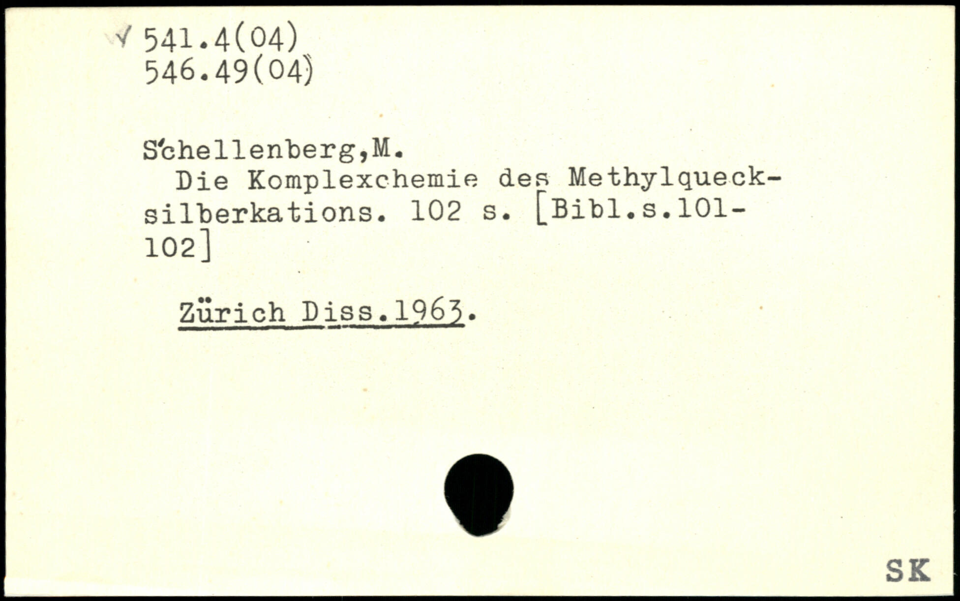 S'che 11 enberg, M. Die Komplexchemie des Methylquecksilberkations.