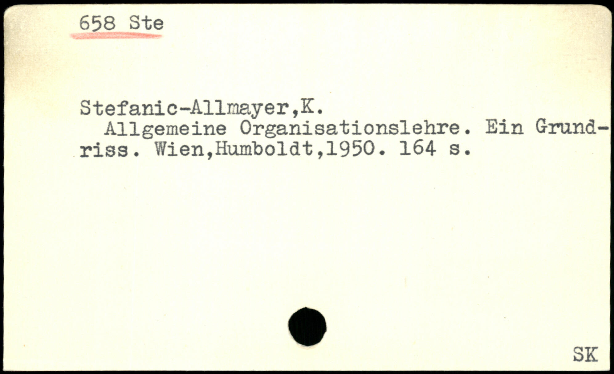 S t efani c-Allmayer,K. Allgemeine Organisationslehre. Ein Grundriss.