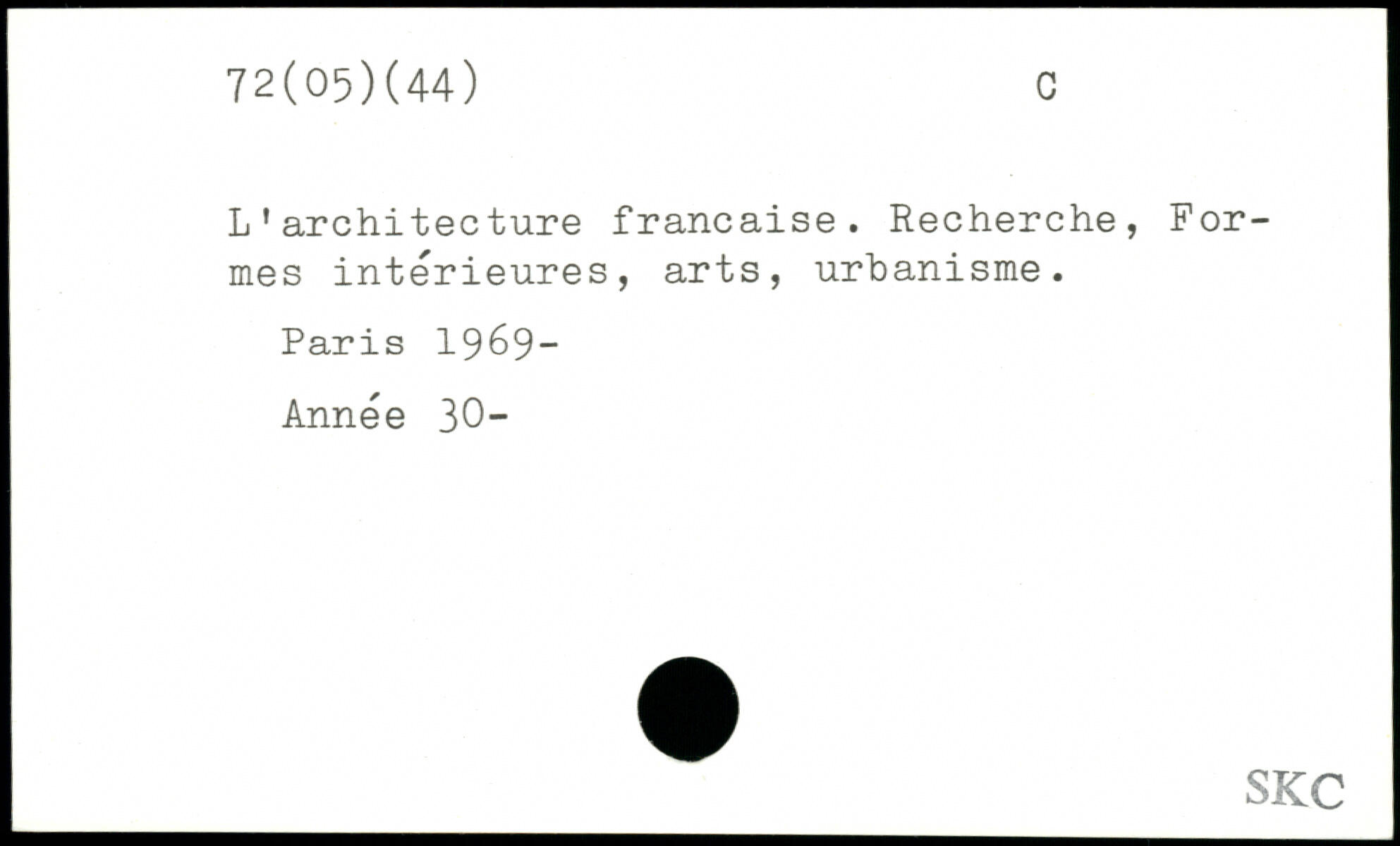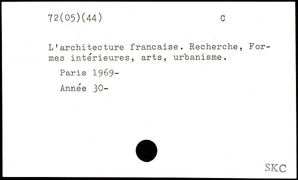 L'architecture française. Recherche, Formes intérieures, arts, urbanisme.