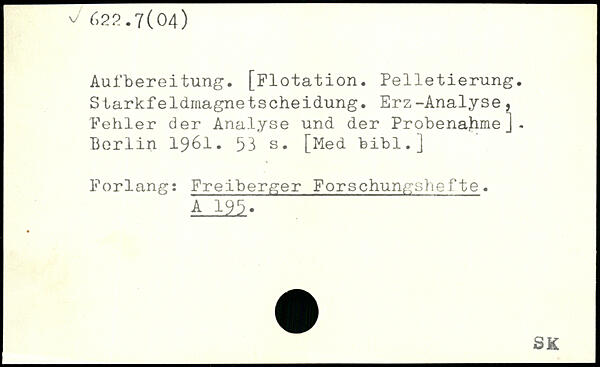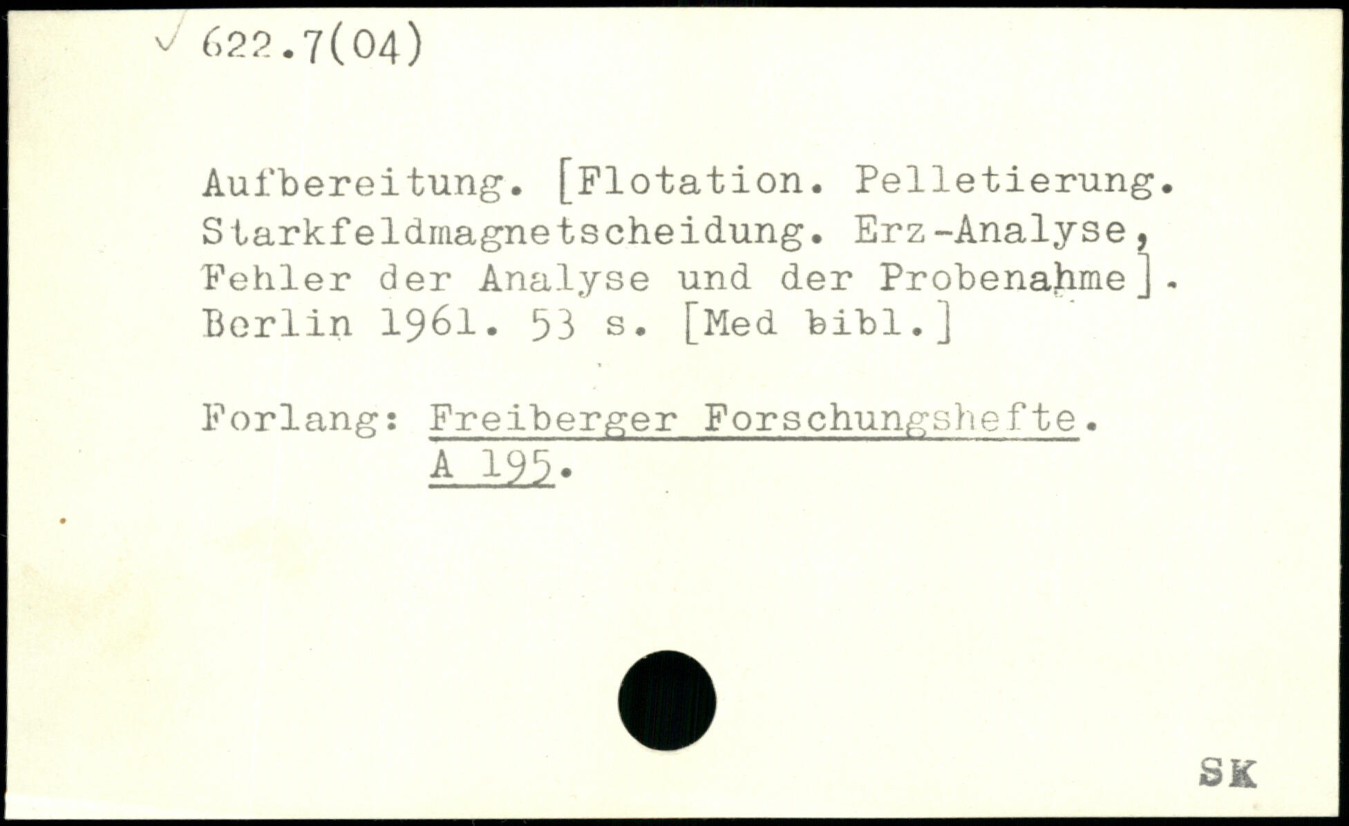 Aufbereitung. [Flotation. Pelletierung. Starkfeldmagnetscheidung. Erz-Analyse, Fehler der Analyse und der Probenahme].