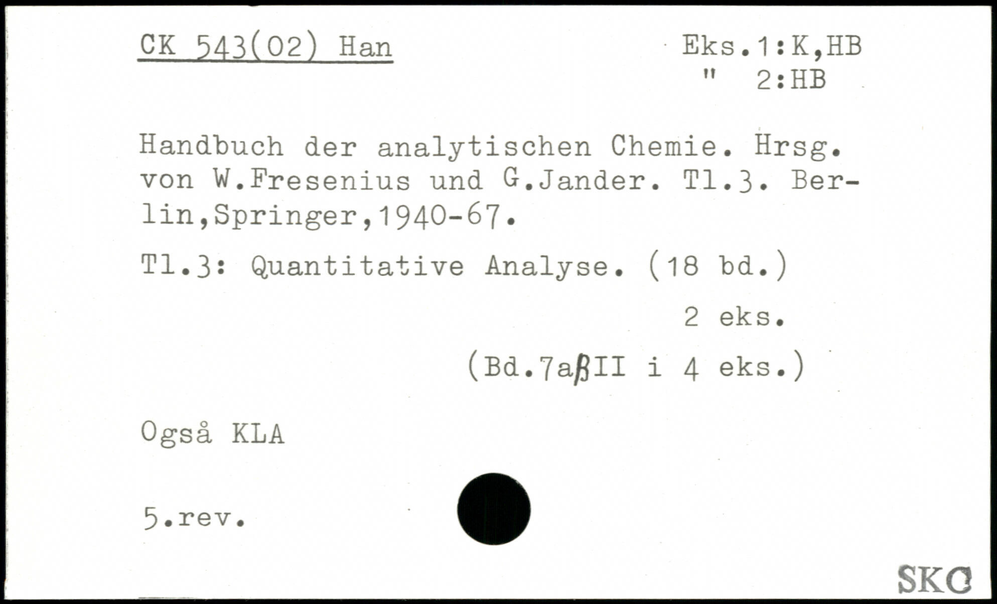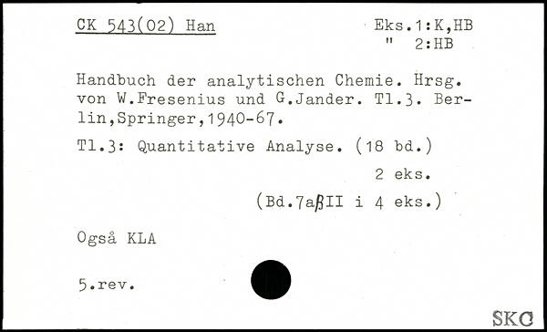 Handbuch der analytischen Chemie. Hrsg, von W.Fresenius und G.Jander. TI.3.