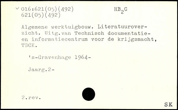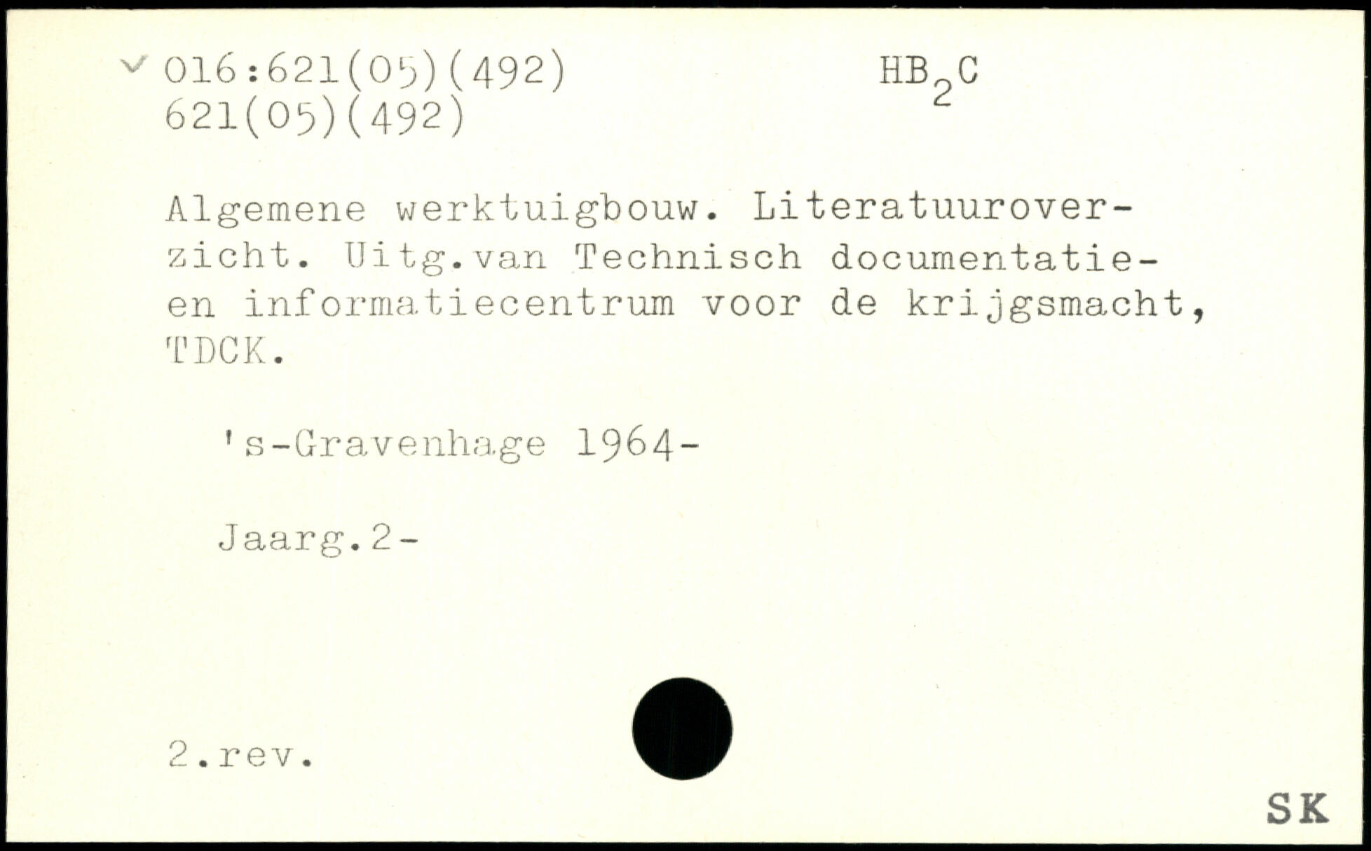 Algemene werktuigbouw. Literatuurover-zicht. Uitg.van Technisch documentatie-en informatiecentrum voor de krijgsmacht, TDCK. ’s-Gravenhage 1964-Jaarg.2-