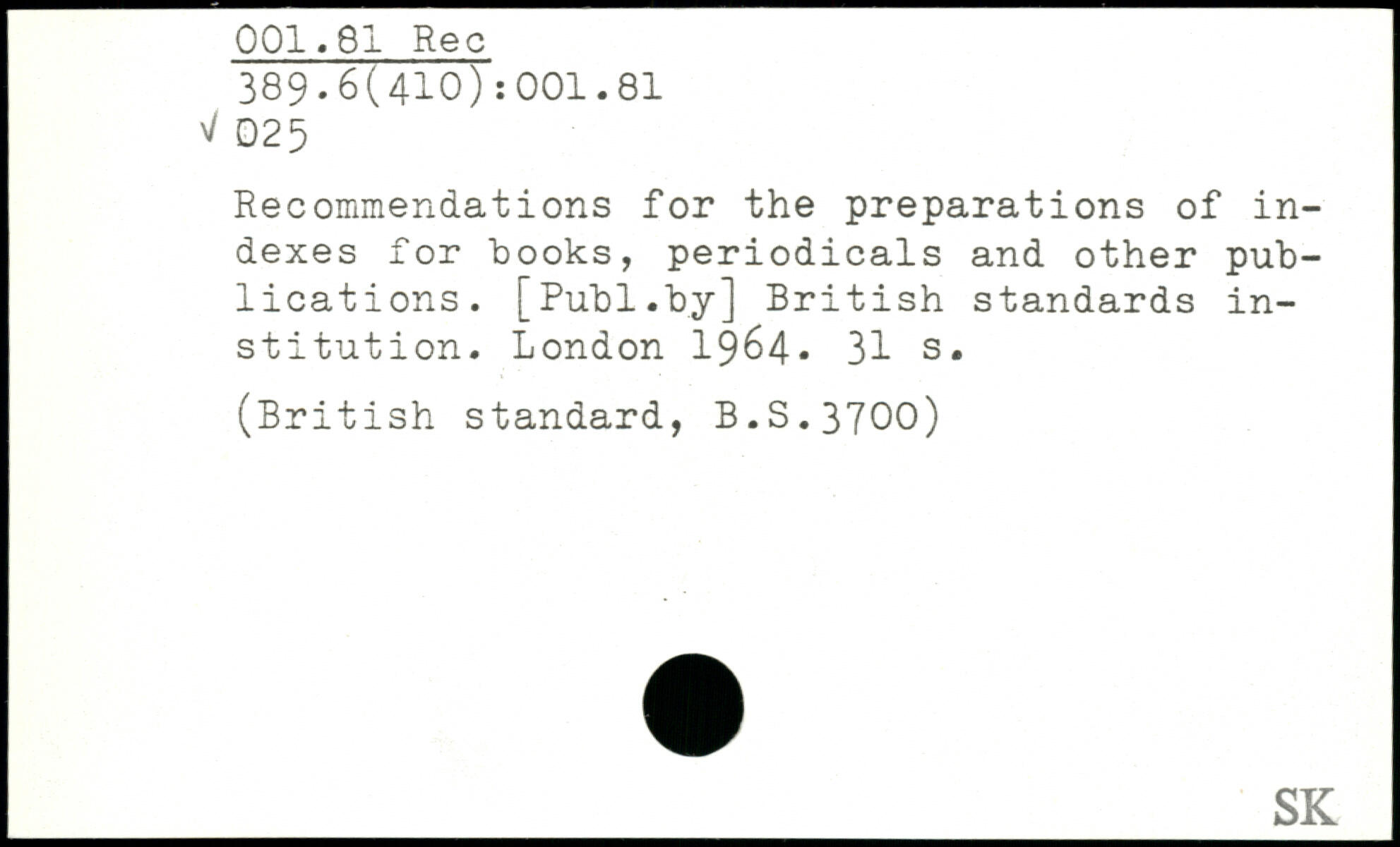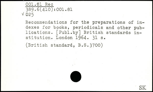 Recommendations for the preparations of indexes for books, periodicals and other publications.