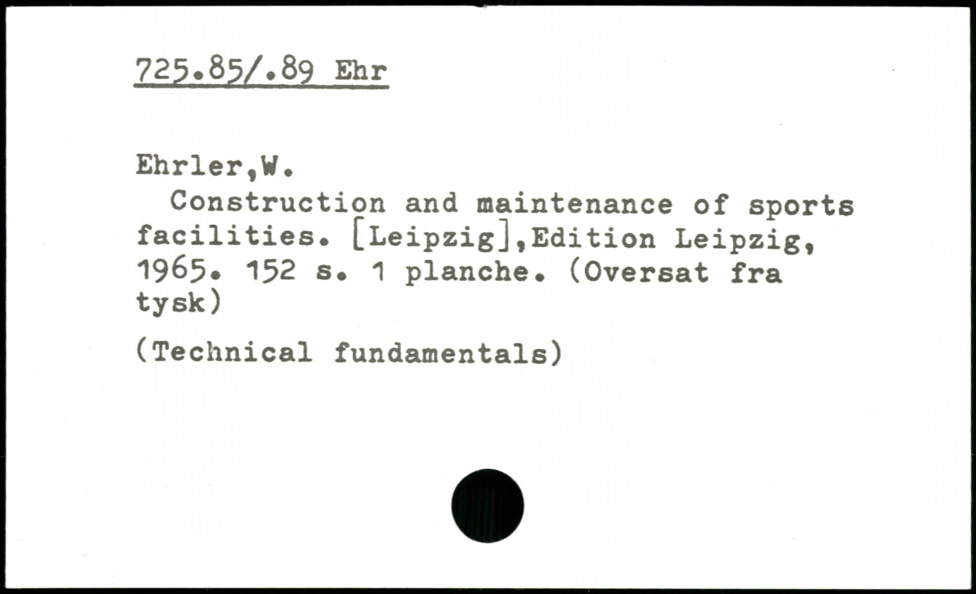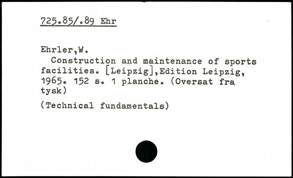 Construction and maintenance of sports facilities. [Leipzig],Edition Leipzig, 1965.