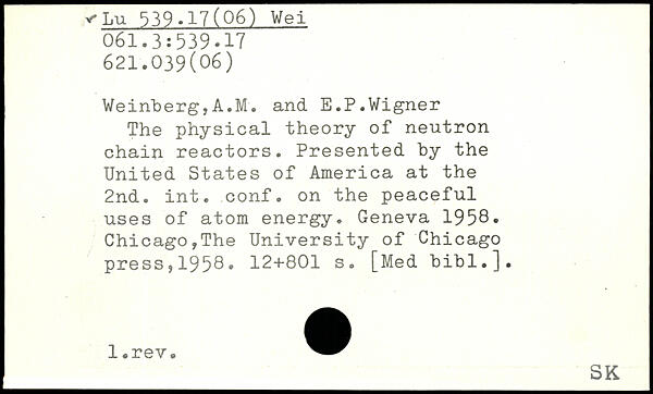 Forfatter: A.M. Weinberg, E.P. Wigner
