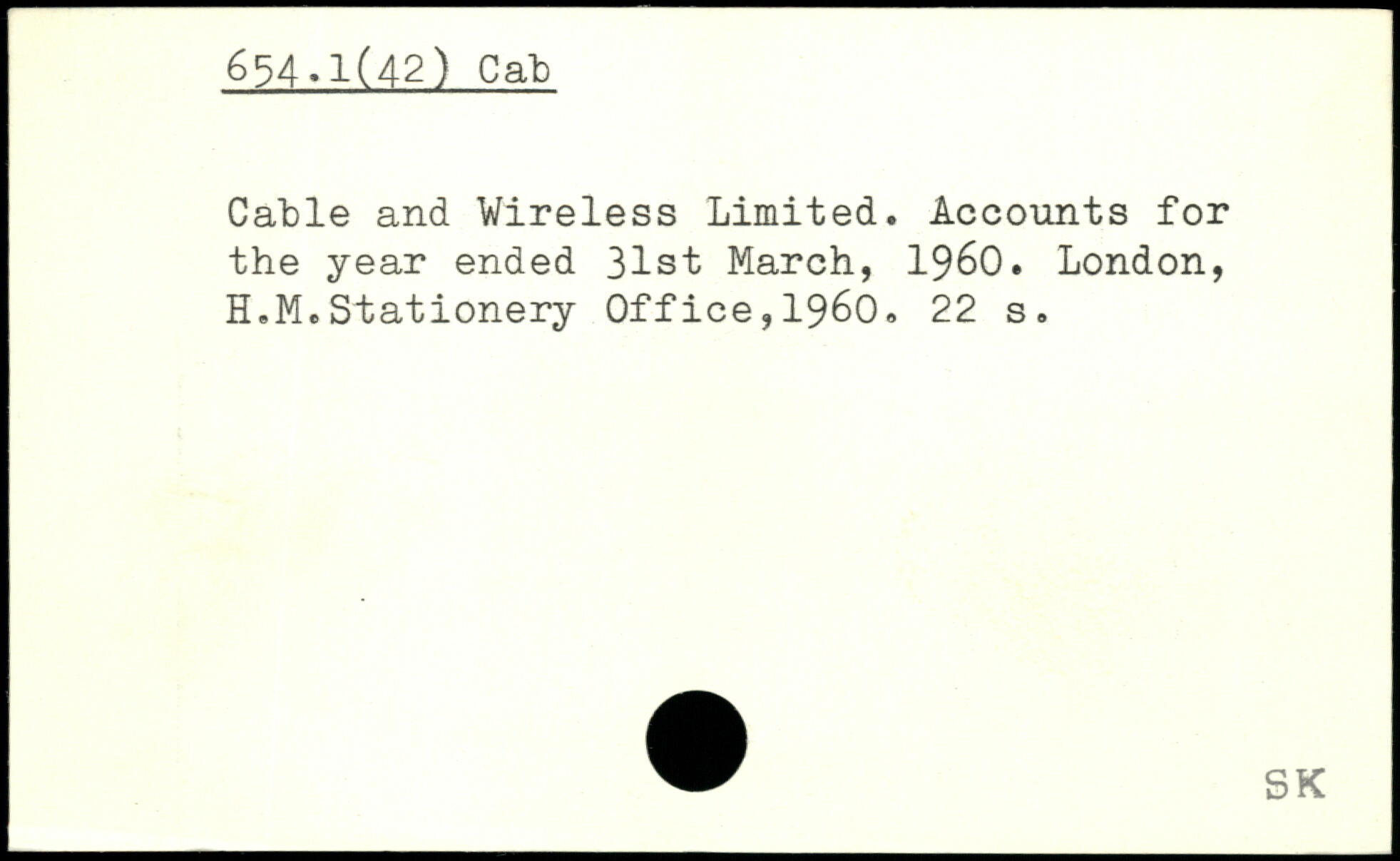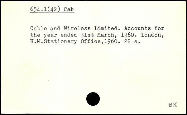 Cable and Wireless Limited. Accounts for the year ended 31st March, 1960. London, H.M.Stationery Office,1960.