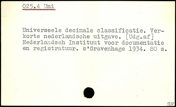 Universeele decimale classificatie. Ver-korte nederlandsche nitgave.