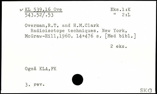 Overman,R.T, and H.M.Clark Radioisotope techniques.