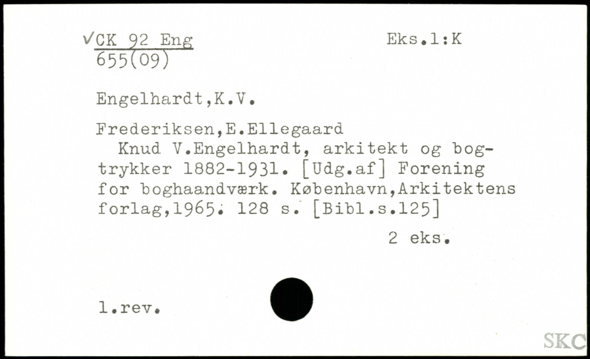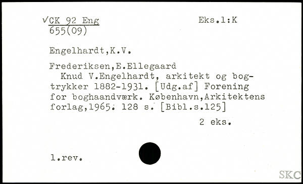 Erederiksen,E.Ellegaard Knud V.Engelhardt, arkitekt og bogtrykker 1882-1931. [Udg.af] Forening for boghaandværk.