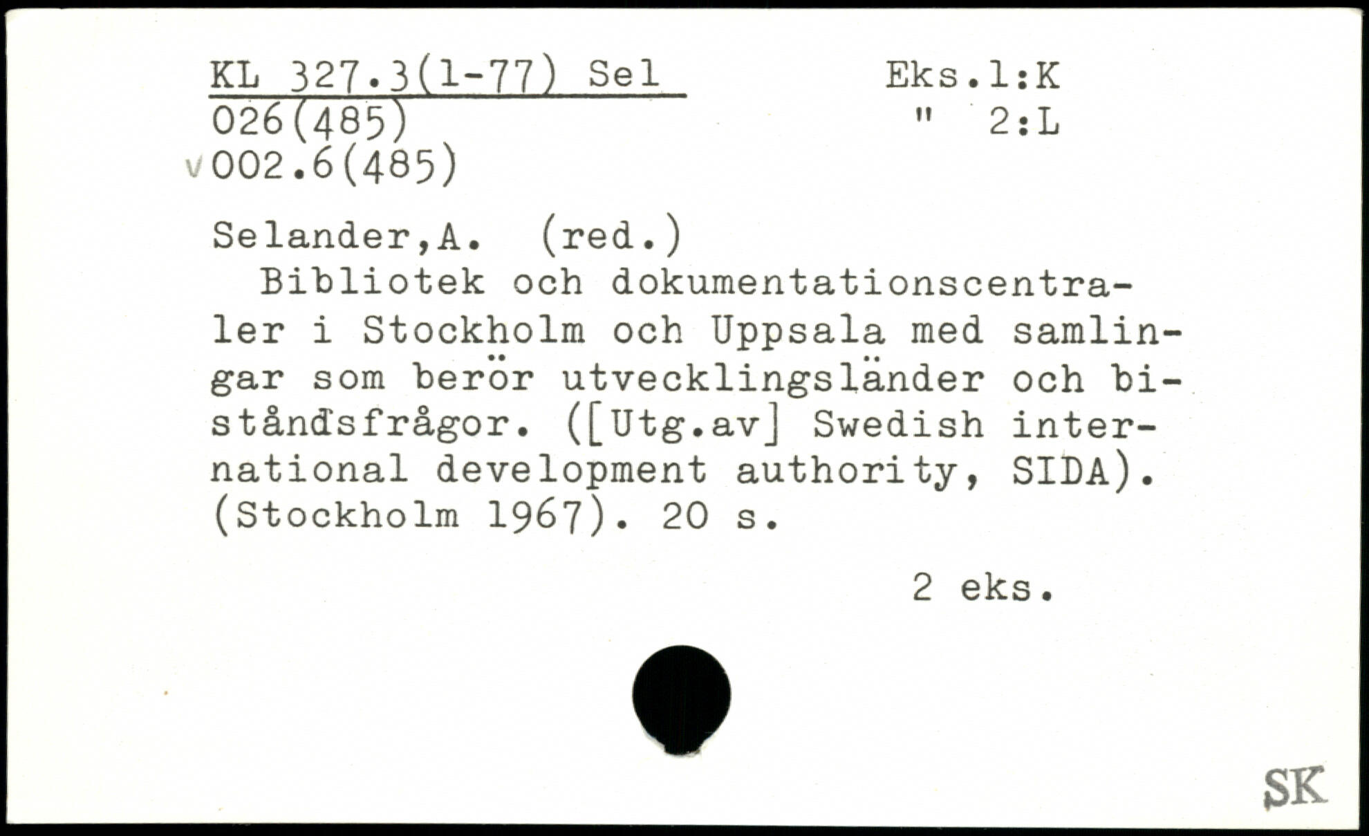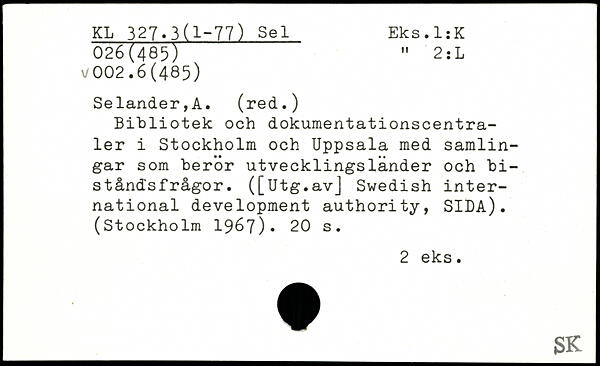 Bibliotek och dokumentationscentraler i Stockholm och Uppsala med samlingar som berör utvecklingsländer och bist ånds frågor. ([Utg.avJ Swedish international development authority, SILA). (