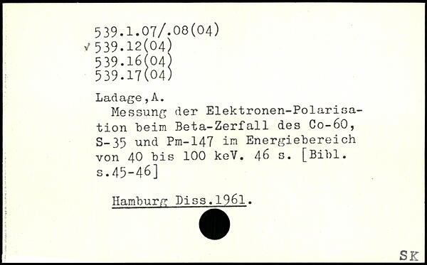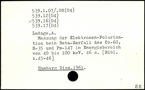 Messung der Elektronen-Polarisa-tion beim Beta-Zerfall des Co-60, S-35 und Pm-147 in Energiebereich von 40 bis 100 keV.