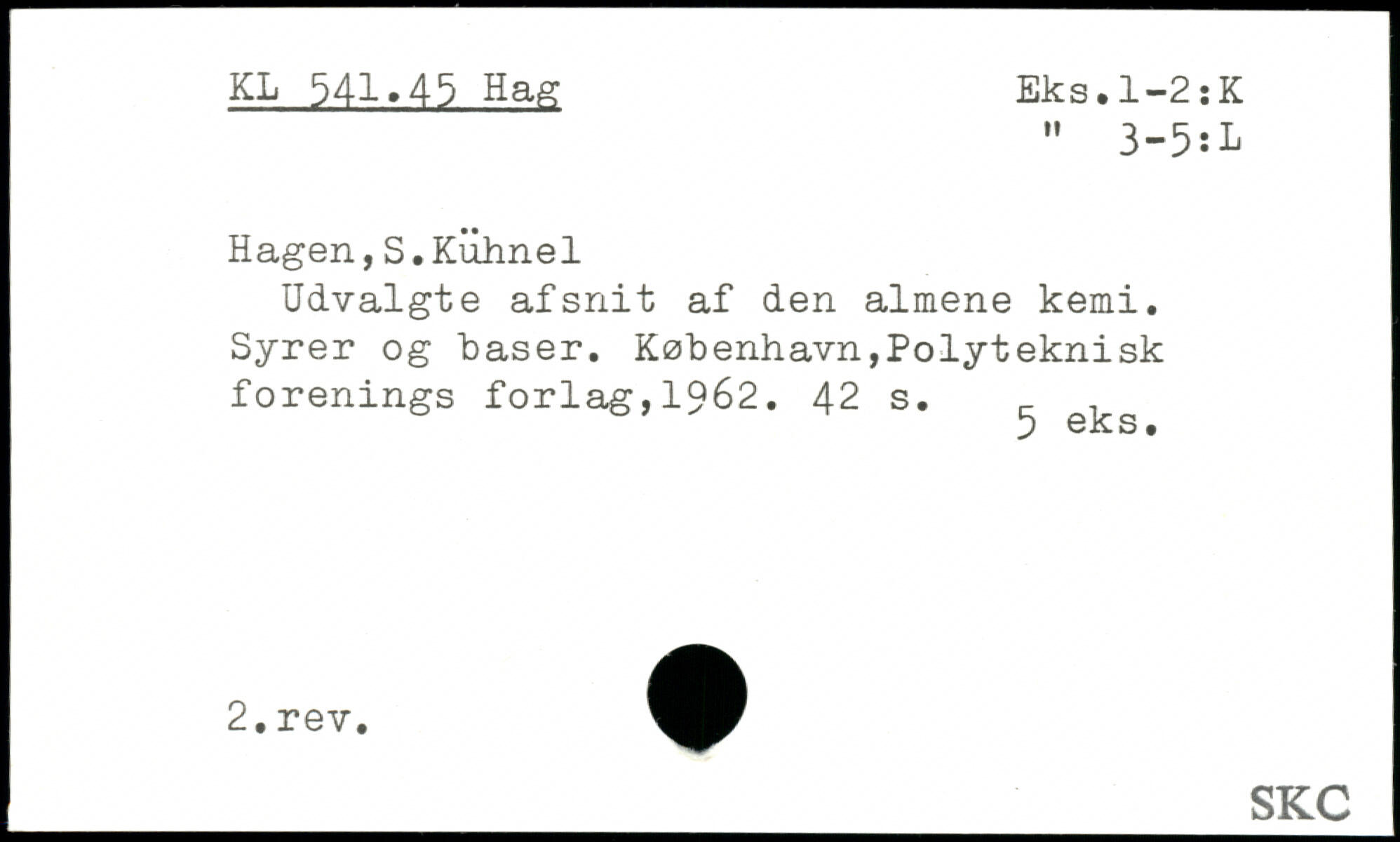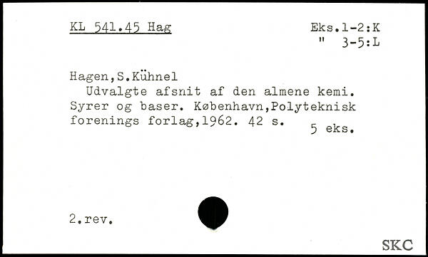 Hagen, S.Kiihnel Udvalgte afsnit af den almene kemi. Syrer og baser.
