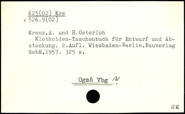 Krenz,Ar und H, Osterloh Klothoiden-Taschenbuch für Entwurf und Ah- steckungo