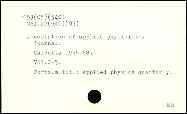 Association of applied physicists, Journalo Calcutta 1955-58.