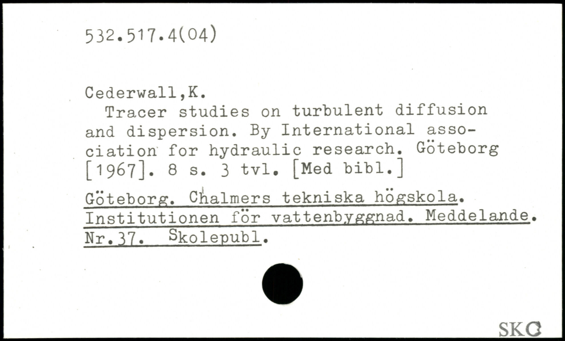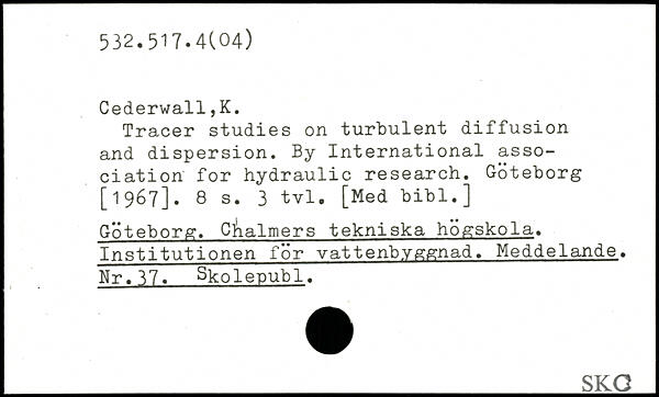 Tracer studies on turbulent diffusion and dispersion. By International association for hydraulic research. Göteborg