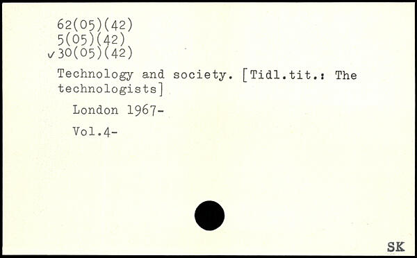 Technology and society. [Tidl.tit.i The technologists] London 196 7—
