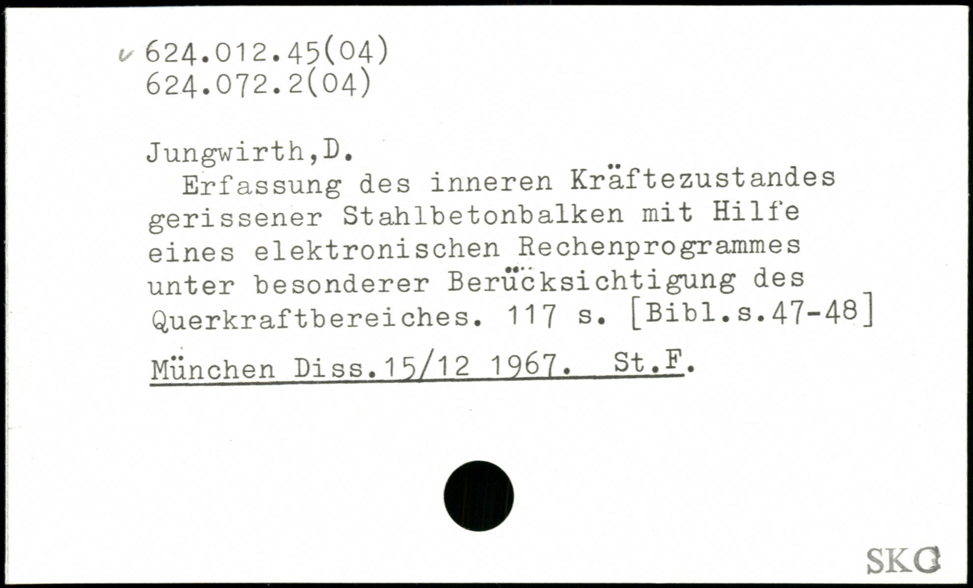 Erfassung des inneren Kraftezustandes gerissener Stahlbetonbalken mit Hille eines elektronisehen Rechenprogrammes unter besonderer Berücksichtigung des Querkraftbereiches.