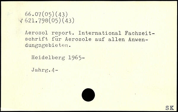 Aerosol report. International Fachzeitschrift für Aerosole auf allen Anwendungsgebieten. Heidelberg 1965- Jahrg.4 -