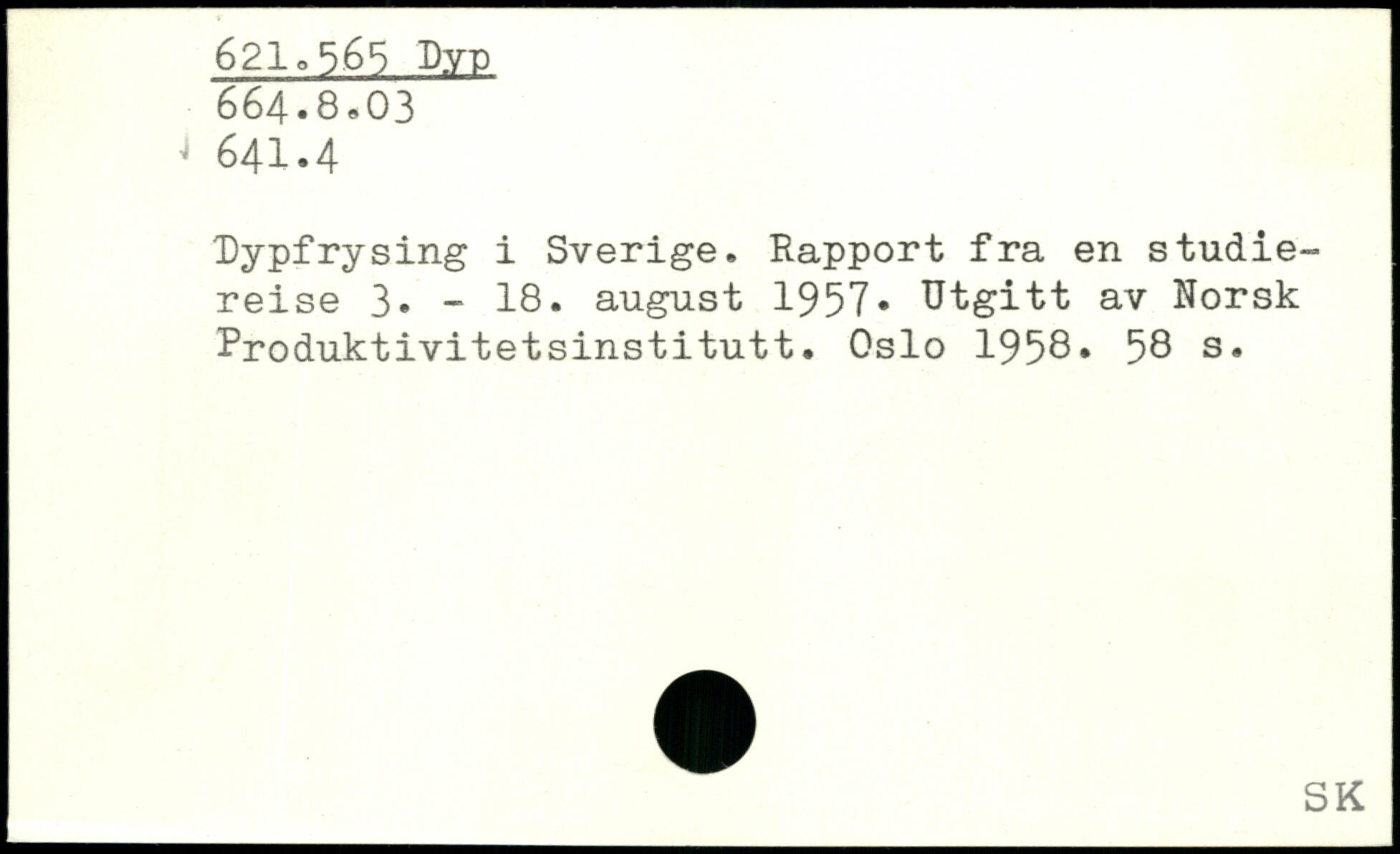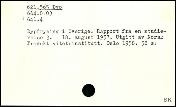 Dypfrysing i Sverige. Rapport fra en studie-reise 3. - 18. august 1957. Utgitt av Norsk Produktivitetsinstitutt. Oslo 1958.