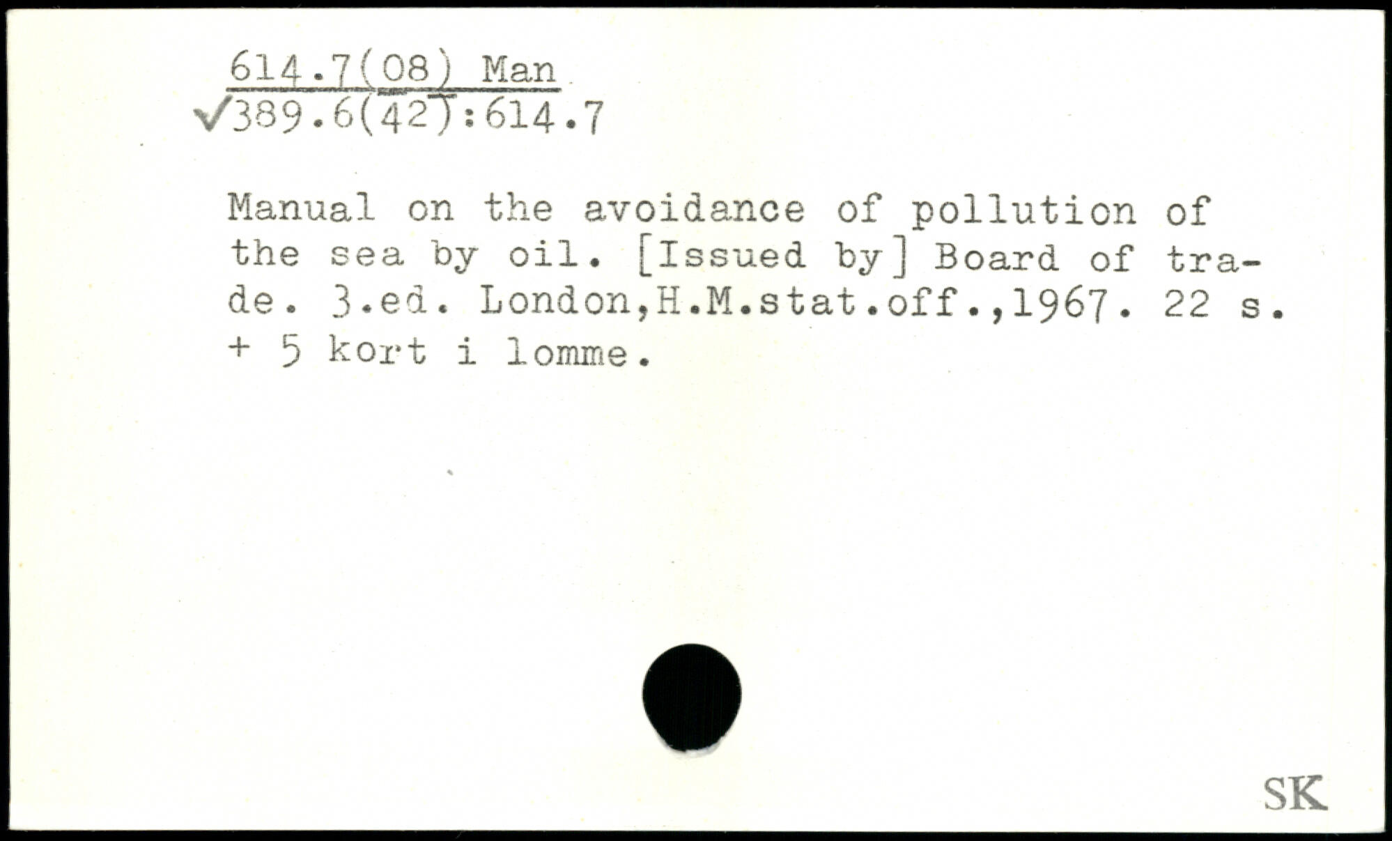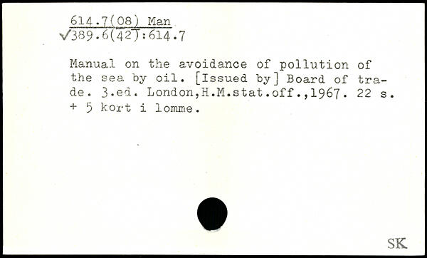 Manual on the avoidance of pollution of the sea by oil. [issued by] Board of trade.