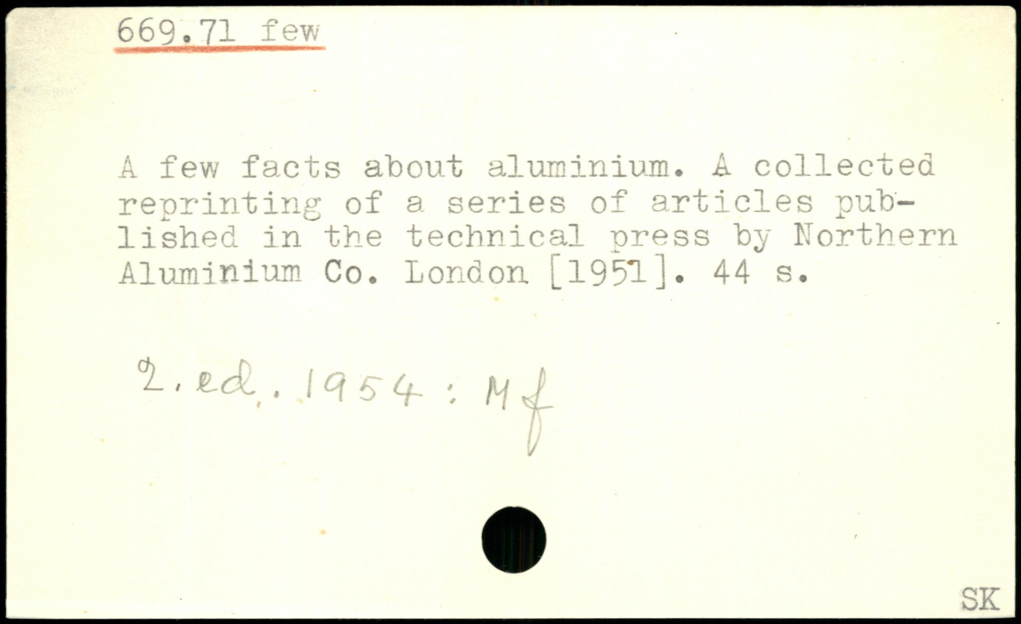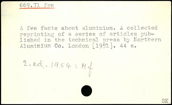 A few facts about aluminium. A collected reprinting of a series of articles published in the technical press by Northern Aluminium Co.