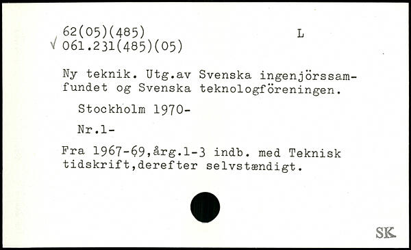 Ny teknik. Utg.av Svenska ingenjörssam-fundet og Svenska teknologföreningen.