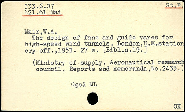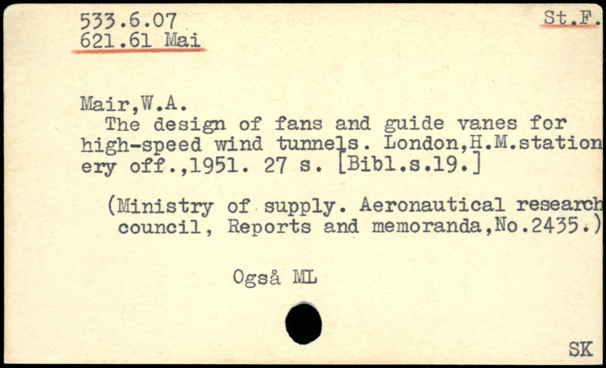 The design of fans and guide vanes for high-speed wind tunnels. London,H.M.station ery off.,1951.