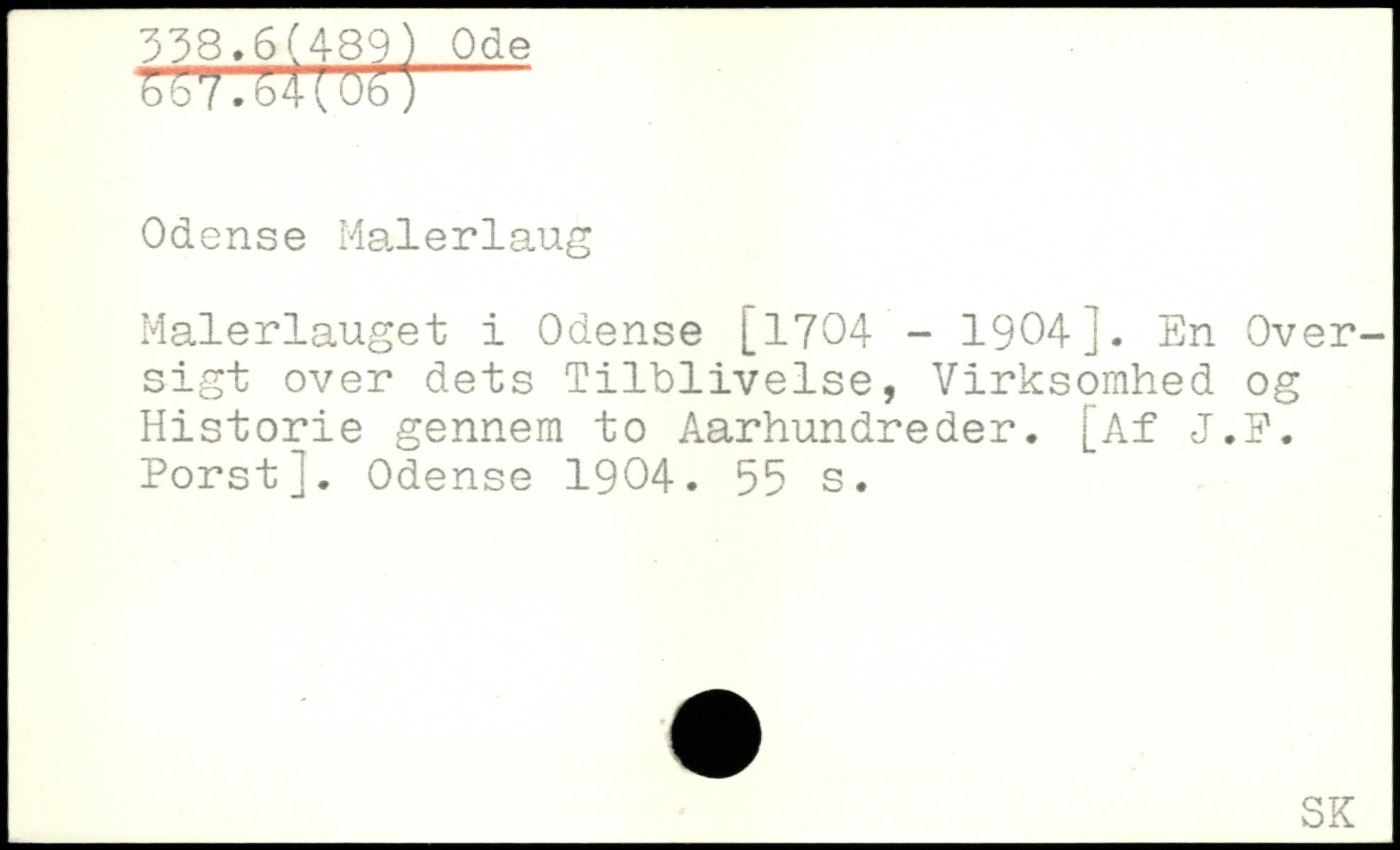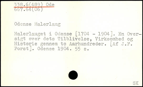 Odense Malerlaug Malerlauget i Odense [1704 - 1904]. En Oversigt over dets Tilblivelse, Virksomhed og Historie gennem to Åarhundreder. [Af J.F. Porst]. Odense 1904.