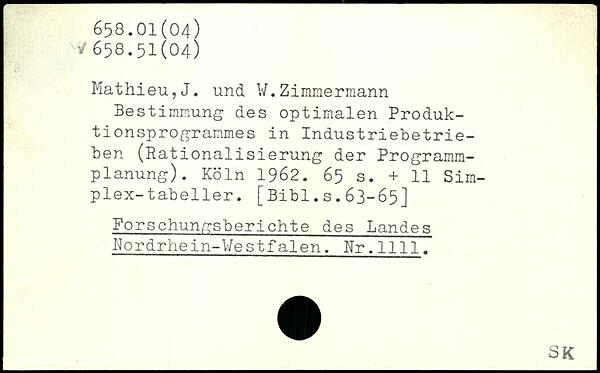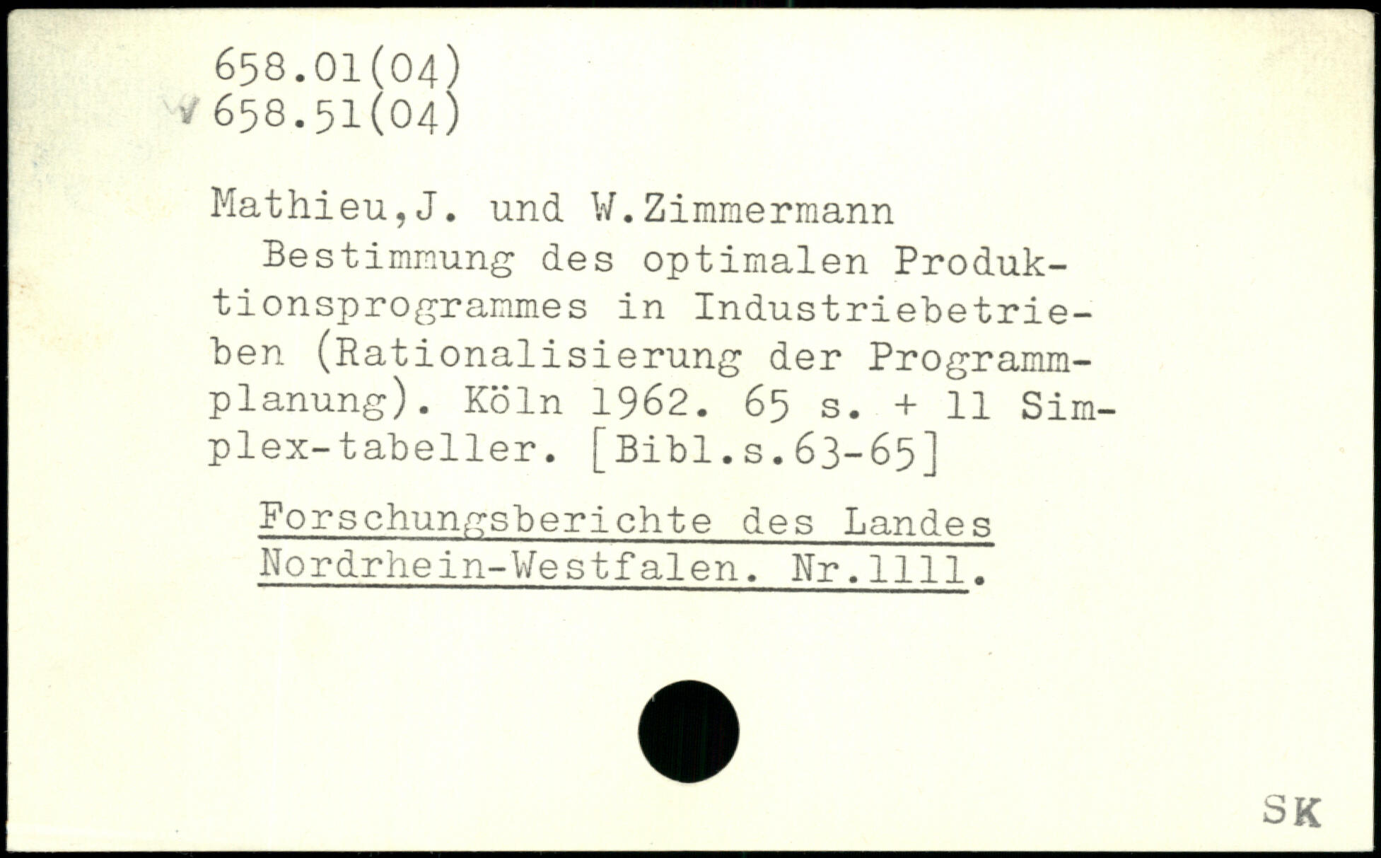 Bestimmung des optimalen Produktion spro gramme s in Industriebetrieben (Rationalisierung der Programmplanung).