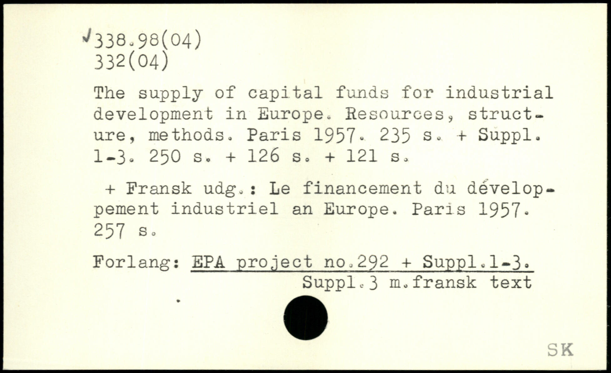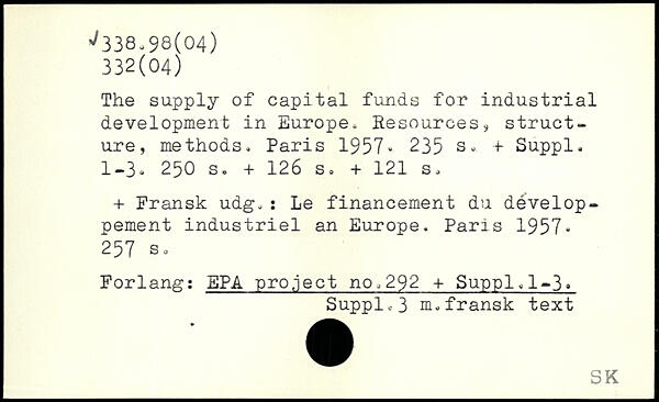 The supply of capital funds for industrial development in Europe, Resources, structure, methods