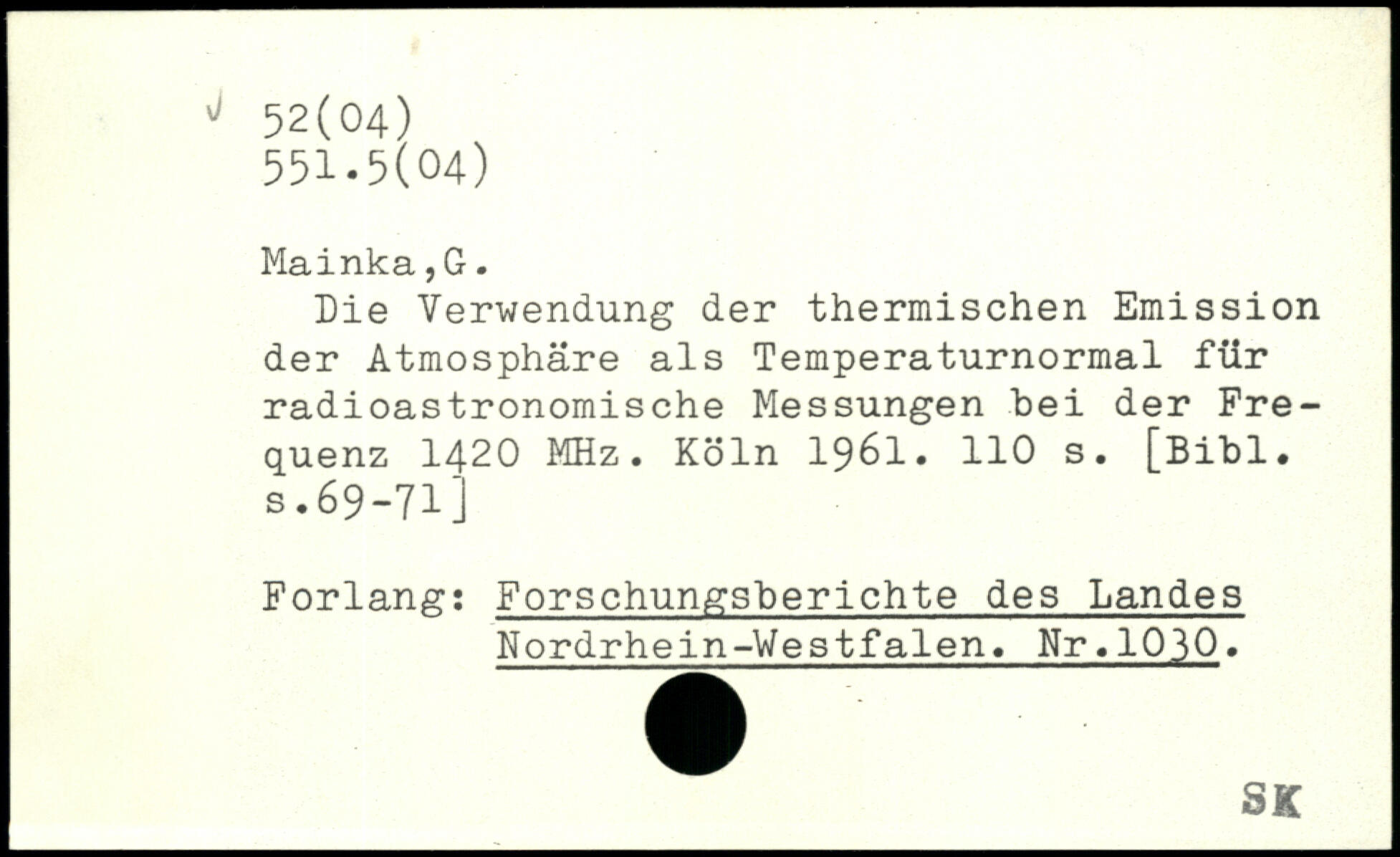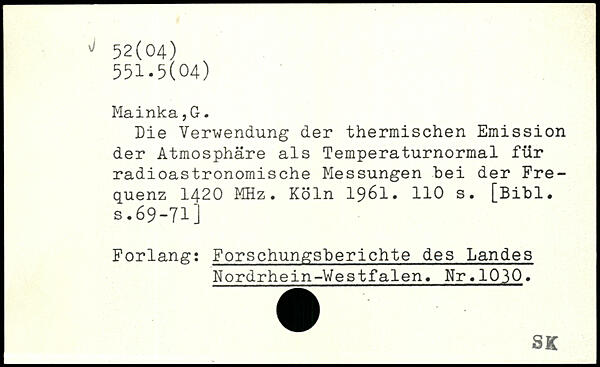 Die Verwendung der thermischen Emission der Atmosphäre als Temperaturnormal für i radioastronomische Messungen "bei der Fre- i quenz 1420 MHz.