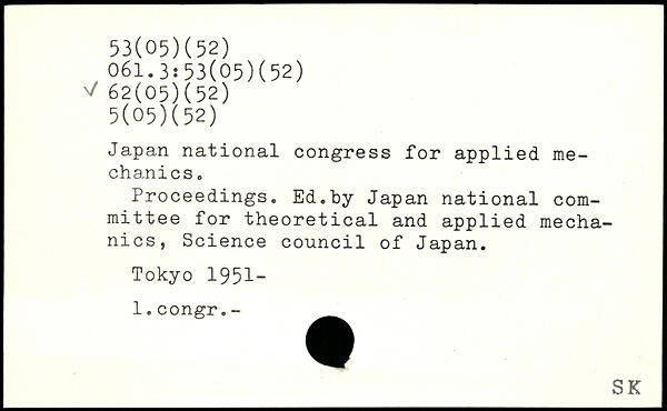 Japan national congress for applied mechanics. Proceedings. Ed.by Japan national committee for theoretical and applied mechanics, Science council of Japan.