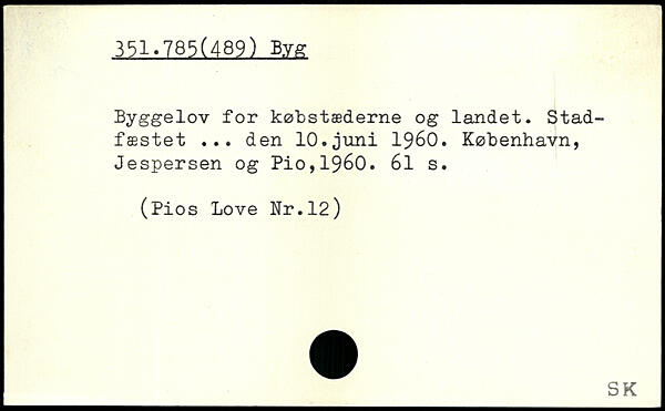 Byggelov for købstæderne og landet. Stadfæstet ... den 10.juni 1960.