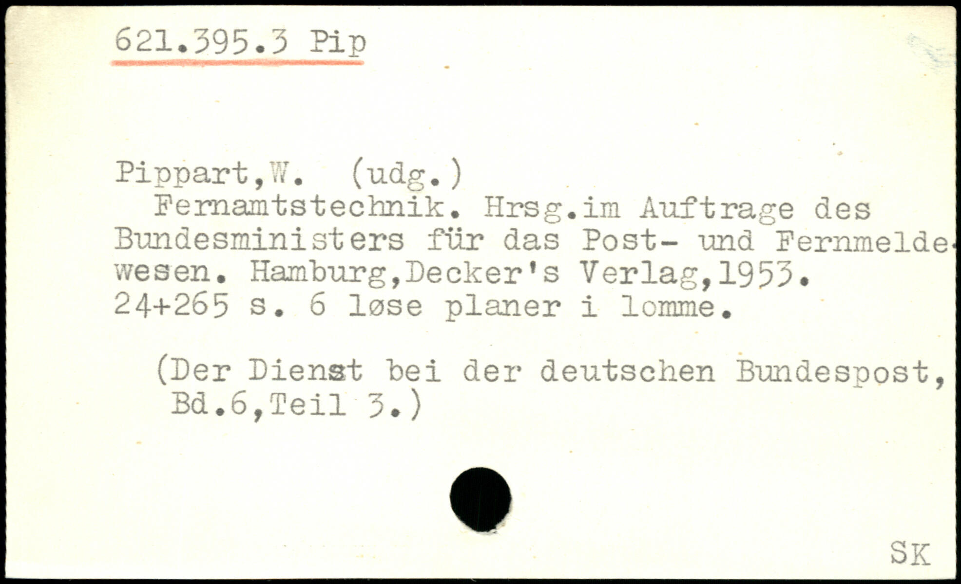 Femamtstechnik. Hrsg.im Aufträge des Bundesministers für das Post- und Fernmelde' wesen. Hamburg,Decker's Verlag,1953.
