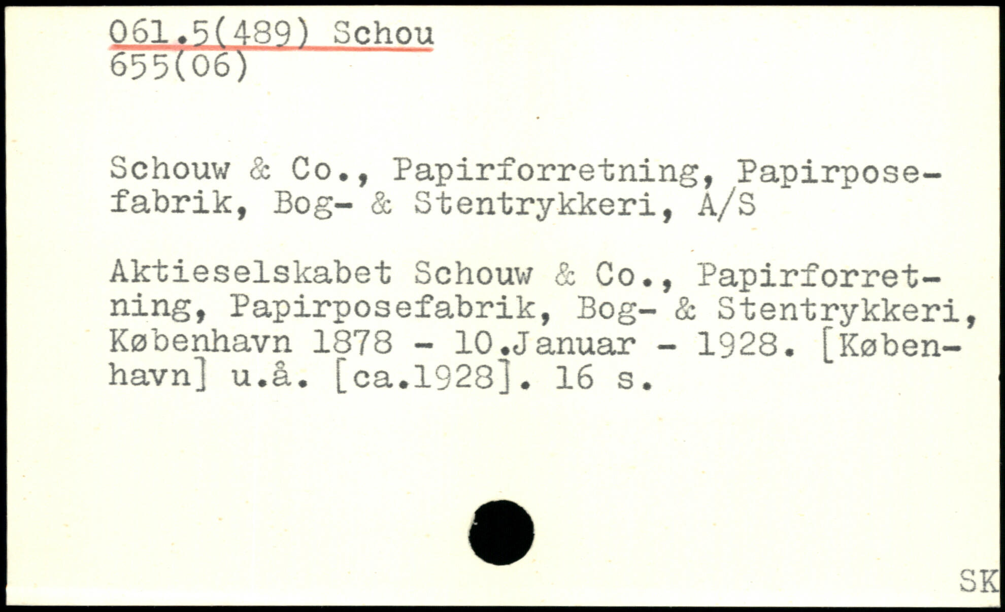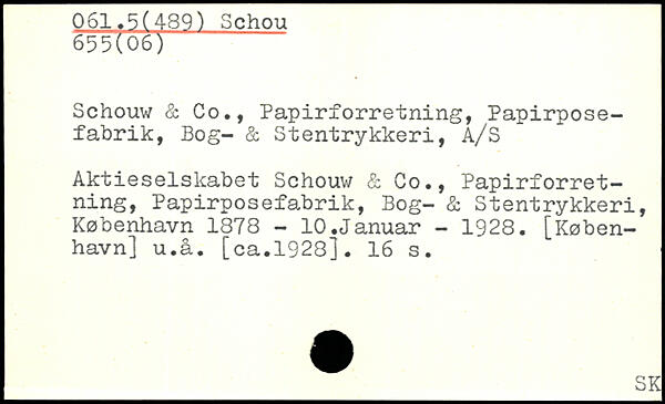 Schouw & Co,, Papirforretning, Papirpose-fabrik, Bog- & Stentrykkeri, A/S Aktieselskabet Schouv/ & Co., Papirforretning, Papirposefabrik, Bog- & Stentrykkeri