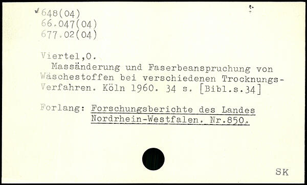 Massänderung und Paserbeanspruchung von Wäschestoffen bei verschiedenen Trocknungsverfahren.