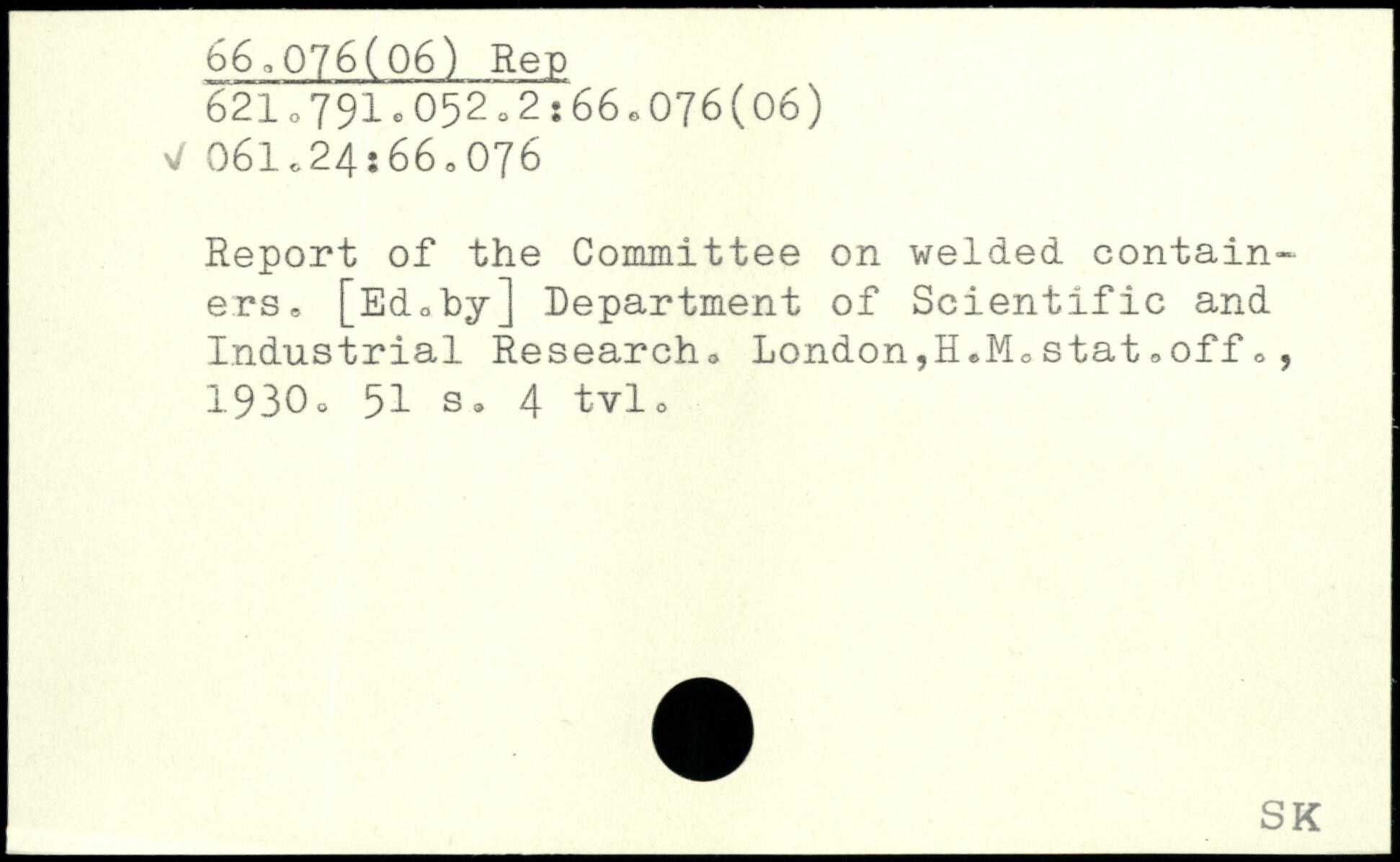 Report of the Committee on welded containers. [Ed.by] Department of Scientific and Industrial Research. London,H.M.stat.off., 1930.