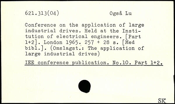 Conference on the application of large industrial drives. Held at the Institution of electrical engineers. [Part 1+2]