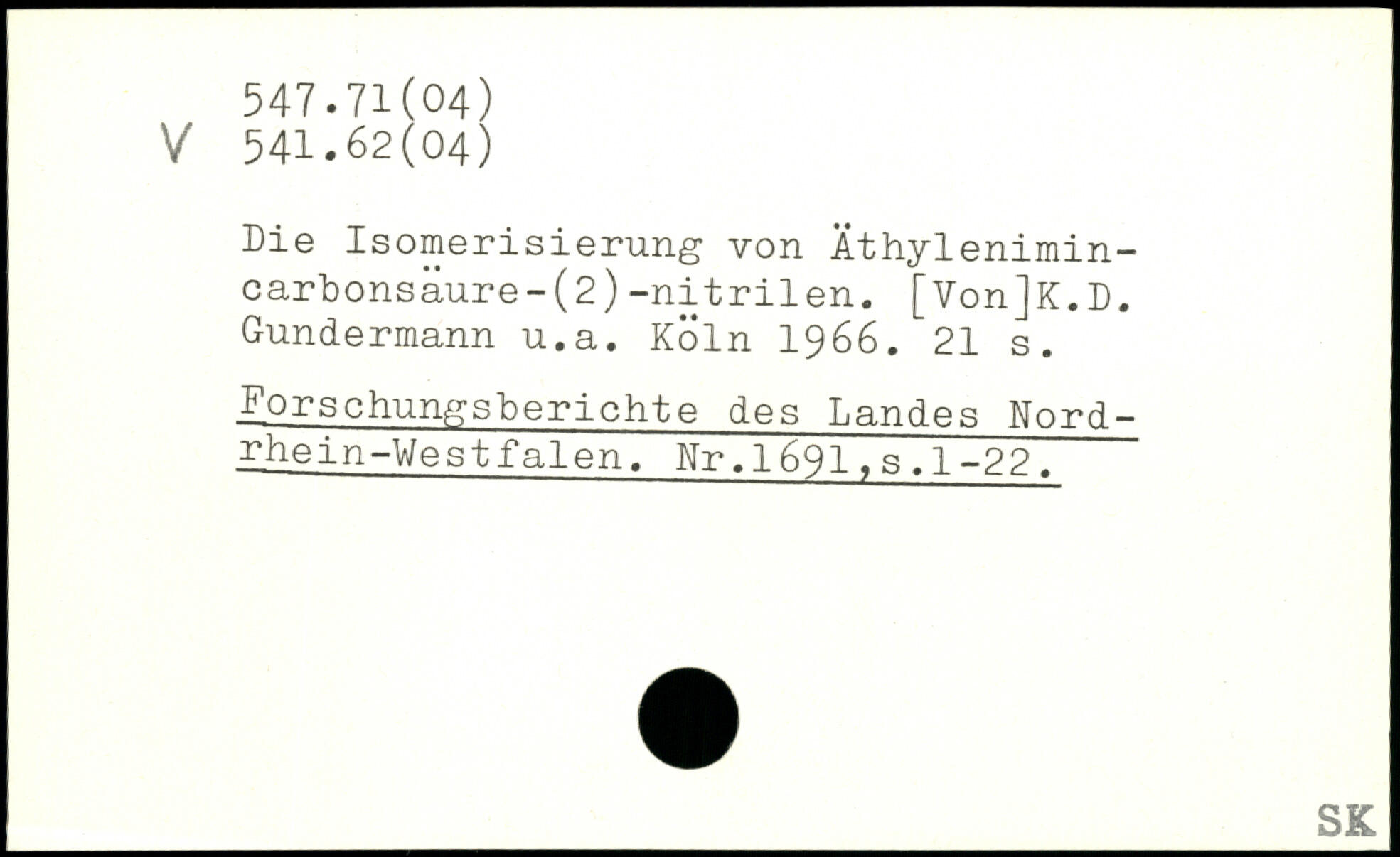 Die Isomerisierung von Äthylenimincarbonsäure- (2)-nitrilen. [Von]K.D. Gundermann u.a.