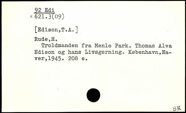 Troldmanden fra Menlo Park.. Thomas Alva Edison og hans Livsgerning.