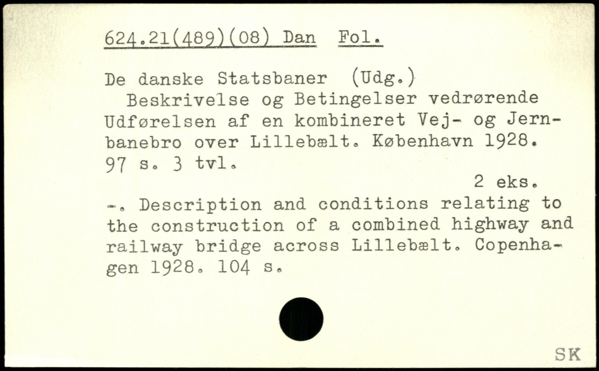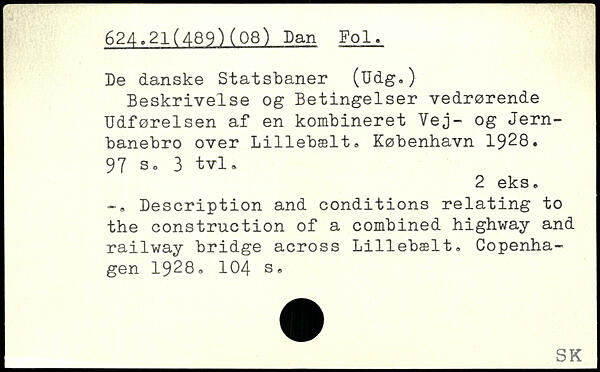 De danske Statsbaner (Udg.) ; Beskrivelse og Betingelser vedrørende Udførelsen af en kombineret Vej- og Jernbanebro over Lillebælt.