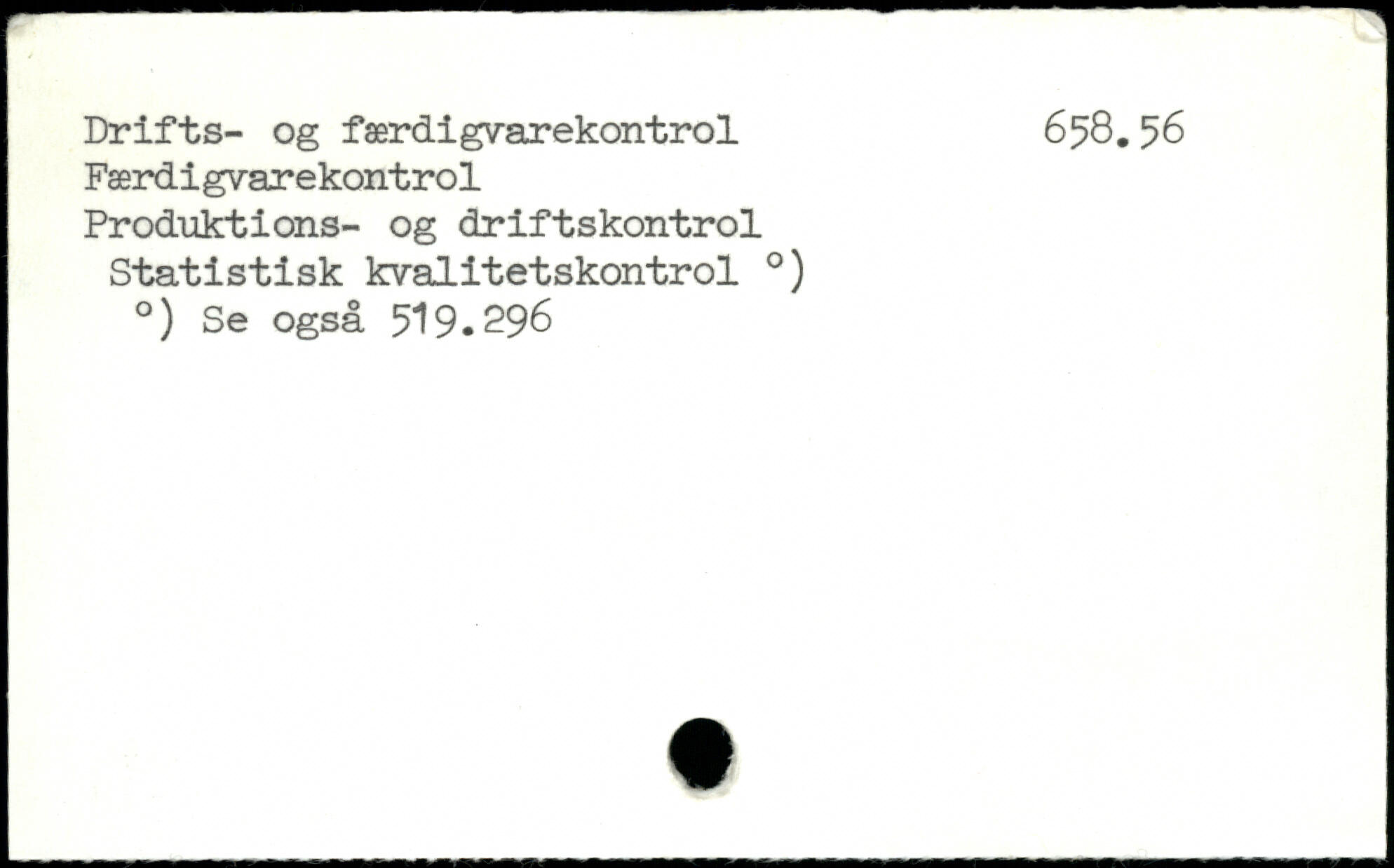 Drifts- og færdigvarekontrol 658.56 Færdi gvarekontrol Produktions- og driftskontrol Statistisk kvalitetskontrol .) .) Se også 519.296