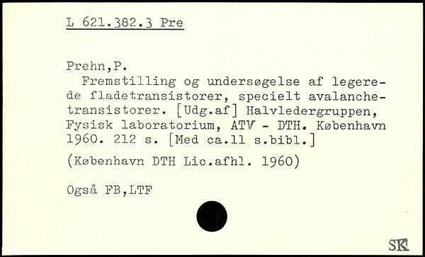 Fremst1111ng og undersøgelse af legerede fladetransistorer, specielt avalanche-transis torer. [Udg.af] Halvledergruppen, Fysisk laboratorium, ATV - DTH.