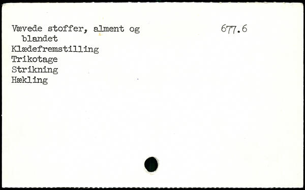 Vævede stoffer, alment og 677.6 blandet Klædefremst1111ng Trikotage Strikning Hækling