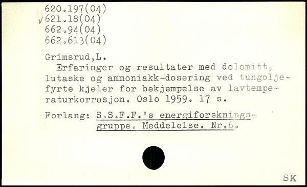 G-rimsrud ?L. Erfaringer og resultater med. d.olomitt3 lutaske og ammoniakk-dosering ved tungolje-fyrte kjeler for bekjempelse av lavtempe-raturkorros.jon, Oslo 1959