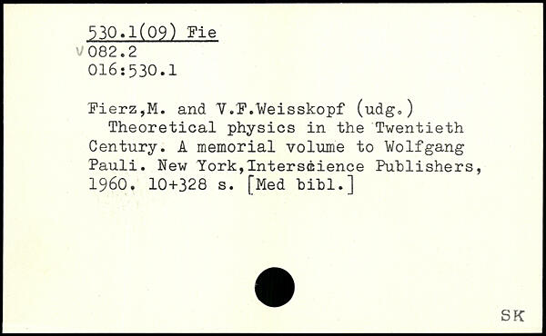 Fierz,M. and Y.F.Weisskopf (udg,) Theoretical physics in the Twentieth Century. A memorial volume to Wolfgang Pauli.