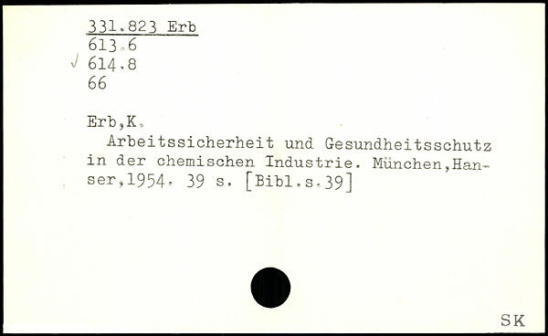 Arbeitssicherheit und Gesundheitsschutz in der chemischen Industrie. München,Han- ser? 1954.