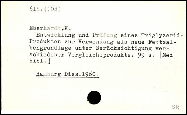 Entwicklung und Prüfung eines Triglyzerid-Produktes zur Verwendung als neue Fettsal-bengrundlage unter Berücksichtigung verschiedener Vergleichsprodukteo